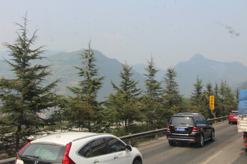 在去的途中,因为前几天的山体滑坡而导致塞车了……