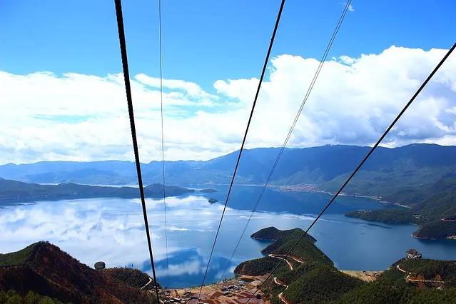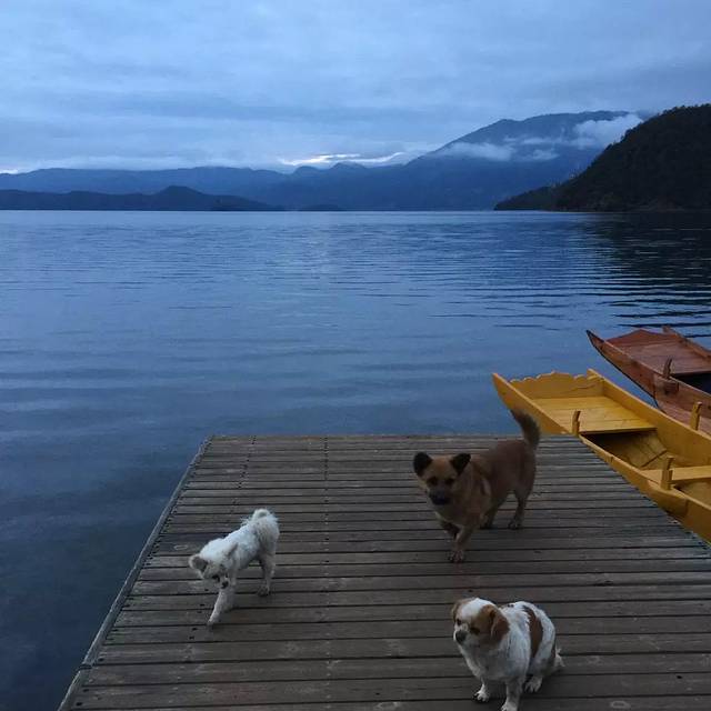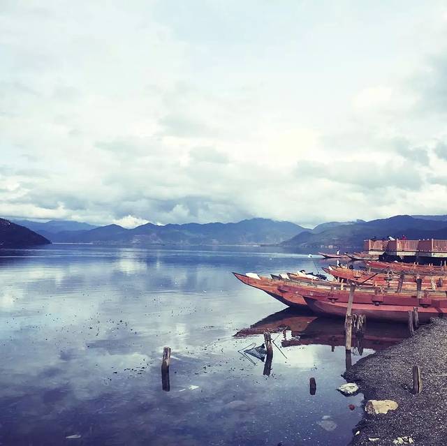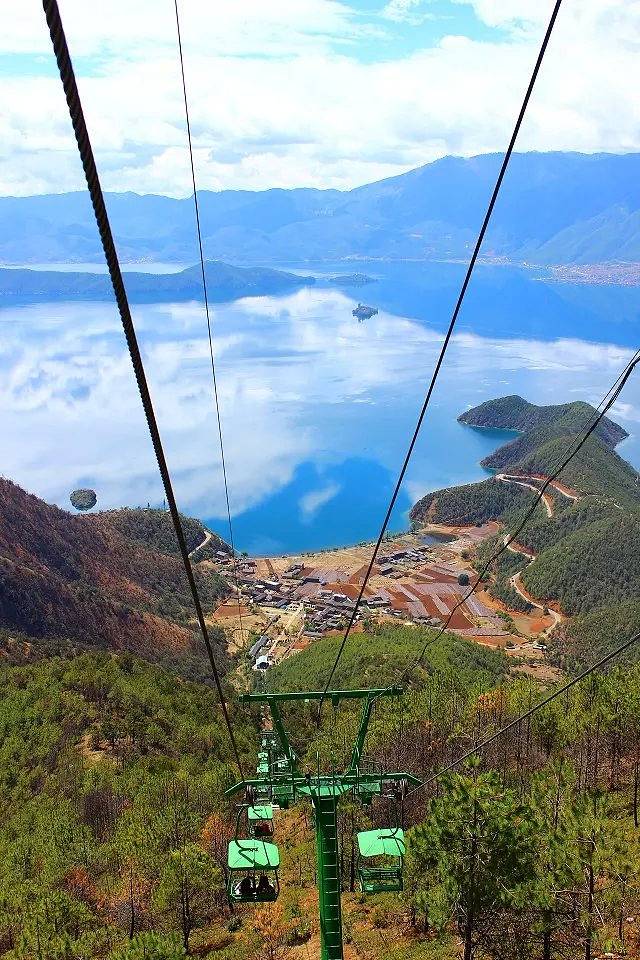 前一天领导交代说如果想看日出的话可以去码头坐船出湖看,又是起大早,搞笑的是大家貌似说好的一样,没洗漱就去了,为了看到日出也是蛮拼的哈~看完日出,大家各自回房洗漱,吃完早饭后大家集合跟着领导开始第二天满满的行程了。一路风景美不胜收,领队也很贴心,不仅细心讲解,还留足时间给大家拍照,当然还适时充当摄影师的角色。我们坐索道上格姆神女峰.在摩梭语中,“格姆”意为女神,在传说中,这座山是格姆女神的化身。缆车是两人一辆,四周没有玻璃之类的防护措施,只有架在身上的横栏可以依靠。这应该是我有史以来坐的时间最长的索道了,望着远处隐没在雾里的山顶,发愁着不知道什么时候才到顶。还好木有恐高啊,大概是索道险峻的缘故,前后的小伙伴竟然对起话来了,响彻山间,回声萦绕。索道越走越陡,我鼓足勇气回头一望,立刻被眼前的美景所震慑了!俯瞰泸沽湖全景,天空中透出了一丝的阳光,照射在湖中,周边的山峰也变得晶莹,耳边除了小鸟的清脆叫声外,一片宁静,心中也感受到从所未有的平静。此番美景美色,好像只应天上有,莫过如此。在这里,能让你找到最真实的自己。欣赏完美景,当然也拍完美照,我们原路返回,然后去参观当地的摩梭人家,当然少不了领队的细心讲解。原来是走婚的摩梭夫妻不会长年生活在一起,他们即便确定了“夫妻”关系,也是日暮而聚、晨晓而归,并非像外界传闻的无节制的走婚;还让人实实在在感受到摩梭人直爽孝顺好客聪明快乐的天性。摩梭人的房屋结构一般为四合院,全用圆木做成,摩梭人称它为“私鲁鱼垮”,意为木头房,也叫木楞房,这种木楞房有冬暖夏凉的优点,还具有很强的抗震能力。正房也叫祖母房,是一家之中最年长的女性——即一家之主——居住的地方。进门时,门很矮、门槛很高,一般人进来的时候都会抬脚低头,而摩梭人就用这个姿势来表示,人们对老祖母的弯腰屈膝,对老祖母无比尊敬。火塘的右边是生死门,出生要经过此门;人离世后,遗体停放于此,在这一期间,死者的家人要请村里的两位老人来守灵,请喇嘛念经为死者超渡灵魂,并请木匠打造棺材,然后选择吉日把尸体放进棺材。泸沽湖神秘的女儿国是人类保存下来最后的母系氏族,摩梭人在泸沽湖这个人间仙境的生活延续着古老的传统:实行“男不娶,女不嫁”的“走婚”制度家庭由最年长或最有能力的老祖母掌握权力,居住于独立的祖母房,若家中最老一辈有多名成员,则以有能者为当家,又有“舅掌礼仪母掌财”的制度。老祖母拥有最高权威,女性主管家中事,男儿劳动在母亲家,家庭子女由母亲和舅舅抚养,钱财均分