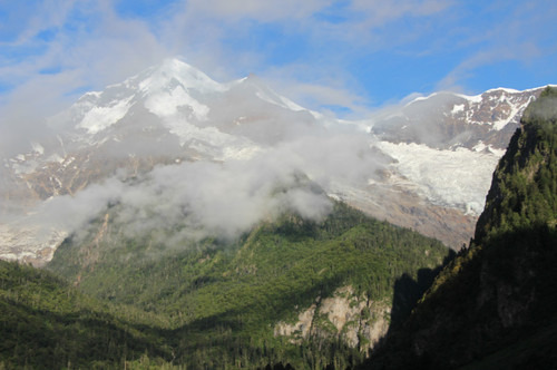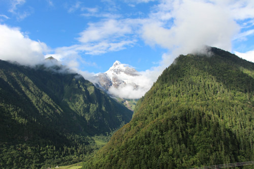 被云层挡住的雪山。