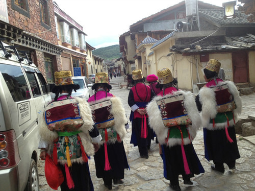 这些应该都是当地的藏族人吧,服装真漂亮。