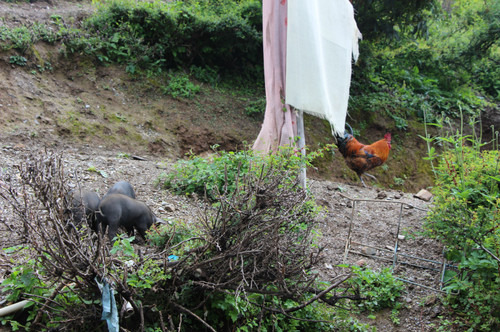 在路上遇到的黑猪,这里的猪肉一定很紧实。都是跑地猪~