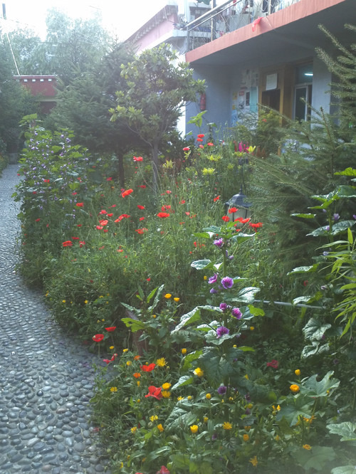 一来到这个青年旅馆,我就被眼前的花吸引住了。