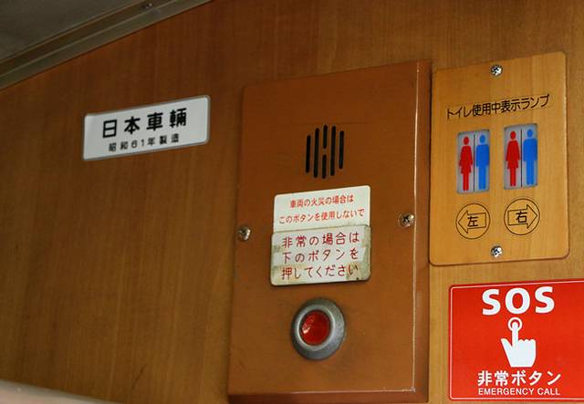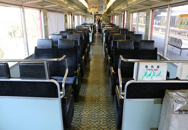 我仔细的看了看车厢,这列火车是昭和61年(1986年)制造,座椅可以180度转动,方便4人同行的旅客。