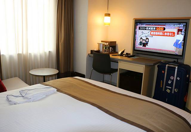 房间虽然不大,但设施非常的齐全。躺在JR九州blossom博多中央酒店房间里看电视,东芝的大液晶看着很爽。