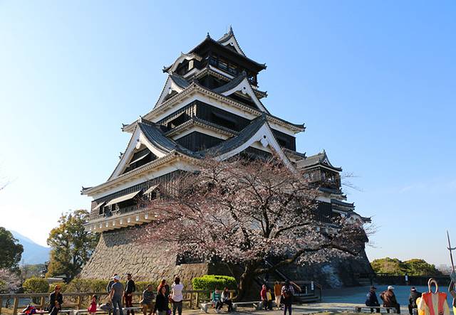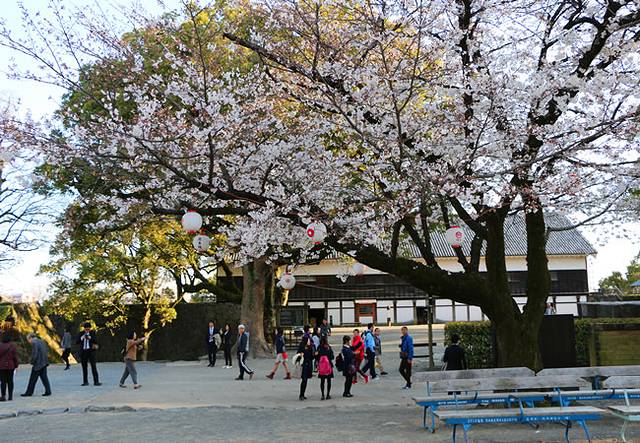 熊本城的樱花开了,非常的漂亮,日本的三大名城之一,门票500日元,物有所值!熊本城的原址是加藤清正1588年作为领主入住隈本城,1601年开始着手修建新城(有几种不同的说法),1607年由加藤清正建造完成改名熊本城,1611年50岁的他病逝,三子忠广为继承人,后来家族被贬为平民,发配到出羽庄内。加藤家族的二代人只在熊本城入住了44年,而细川家族十一代人入住长达239年。