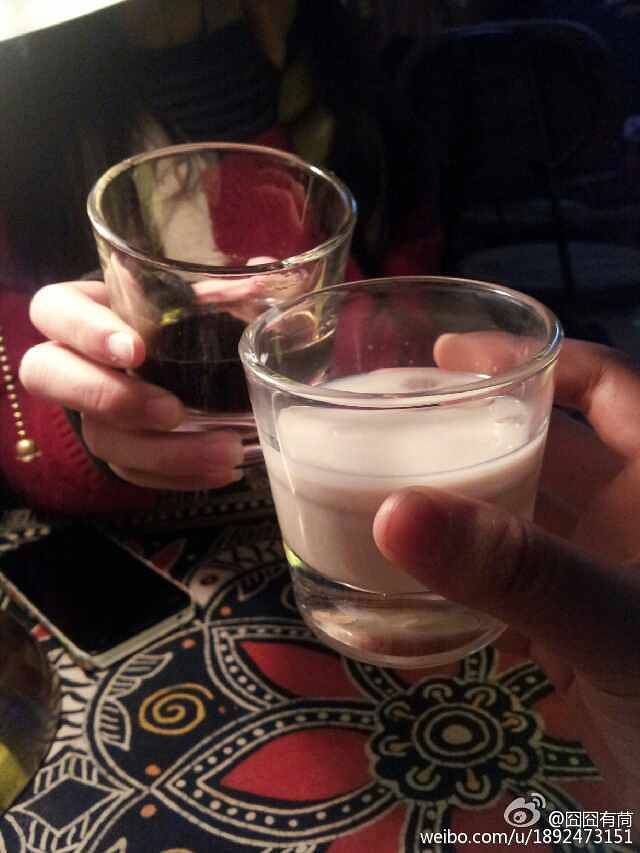 点的两杯都是洋酒,特意问了下小哥哪种度数最低,大概20度,分别是牛奶味和咖啡味,咖啡味的洋酒酒味更浓郁~