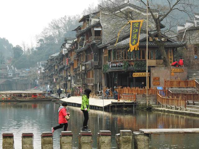 凤凰的跳岩,比小女孩追赶的Kim其实我们都怕走类似独木桥的东西,我帮Kim拍照时脚都僵硬~