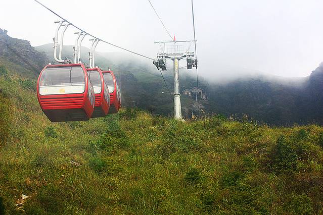 乘坐二级索道向金顶前行,山下是大太阳,可惜山上天气就不那么好了。