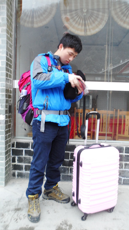 这个傻瓜就一路上帮我提着24寸的行李箱,自己还有背着这么重的行李~