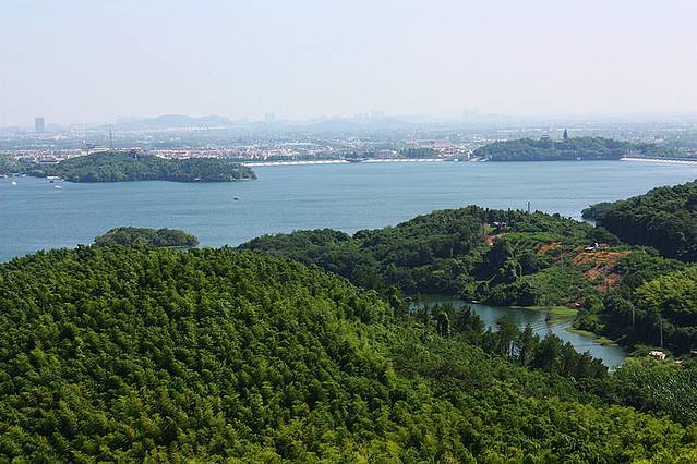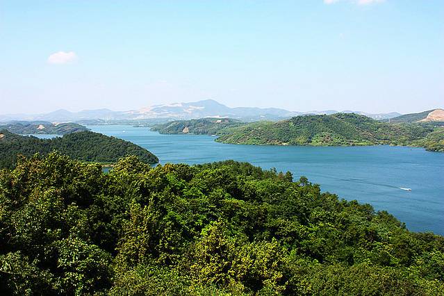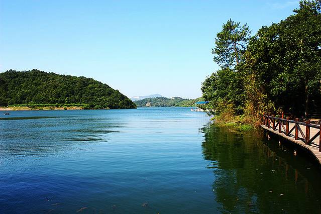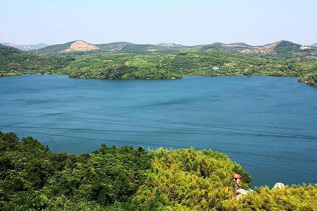 登高天目览胜,只见开阔的湖面宛如蓝色成画,又似那般朦胧诗韵。