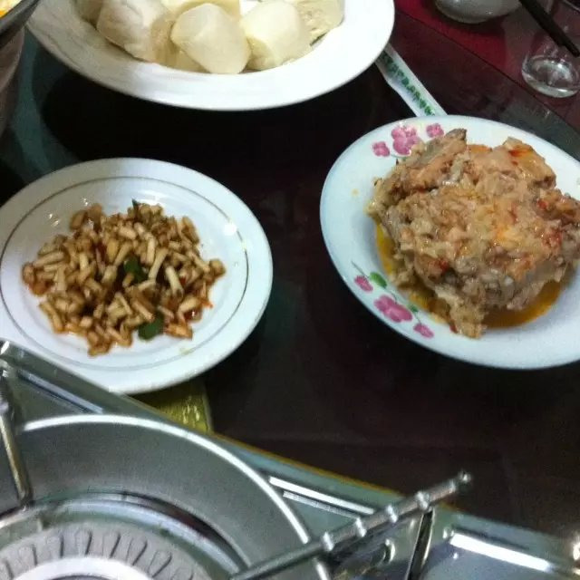 这货我是没有单独吃的,特意百度了一下,他们说是“神豆腐”上面那盘鸡肉里有放这东西作为底料之一,入口顺滑~~~嗯~