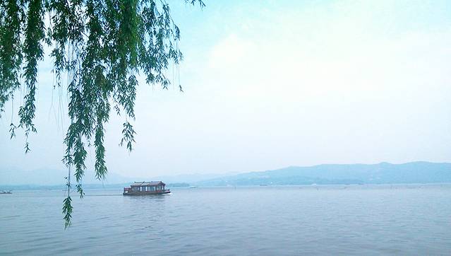 这仅仅是西湖一角,可却让人无比宁静。再也不会有一种美好大于此,跟着你爱的他,坐在这西湖边,即便什么都不说,也抵过千言万语。杨柳下,我爱你!