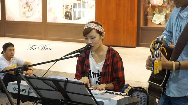看得人很多基本都是在拍照的。街头表演在台湾随处可见。这个美女人美,歌声么,一般般。