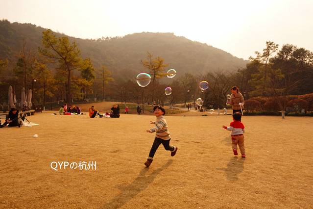 追逐泡泡的小孩……