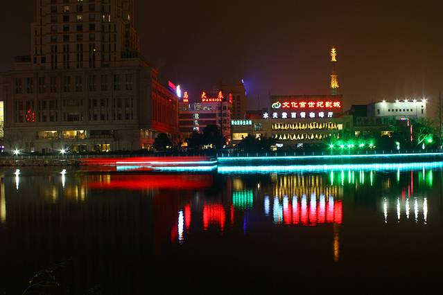 夜色中的濠河,最让人激动的是那种希望如水的憧憬。当有不了解南通的人想去了解这座城市的时候,可到濠河边寻找城市的踪影。驾一叶小舟,顺濠河水而流,听濠河水慢慢向你诉说南通的昨天、今天、明天……