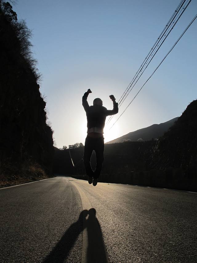 无车的公路是戏耍的好地方~~