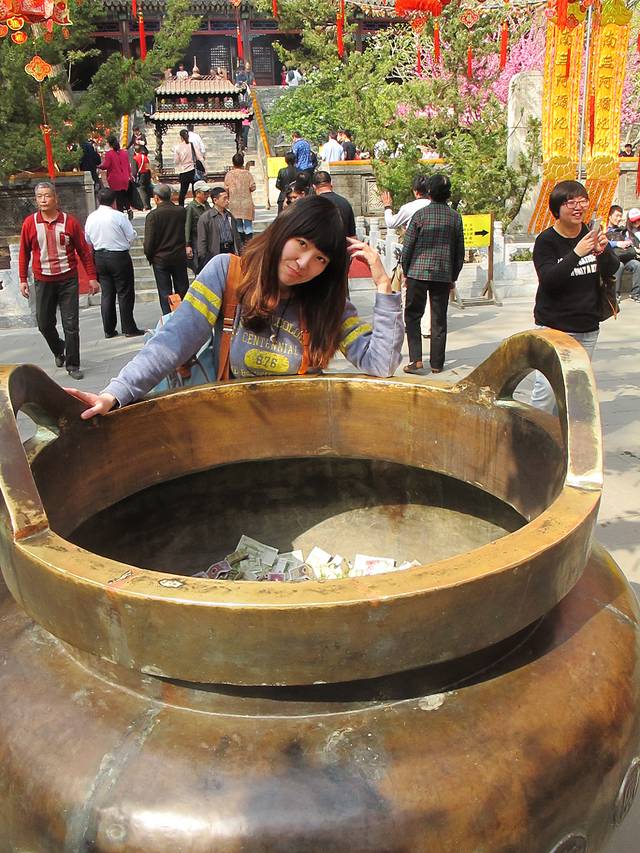 我们的计划是今天去潭柘寺~~于是我们在快到终点的倒数几站下了车,原地过一个天桥,又坐上了去潭柘寺的bus, 依旧有座,过不多久就到了。