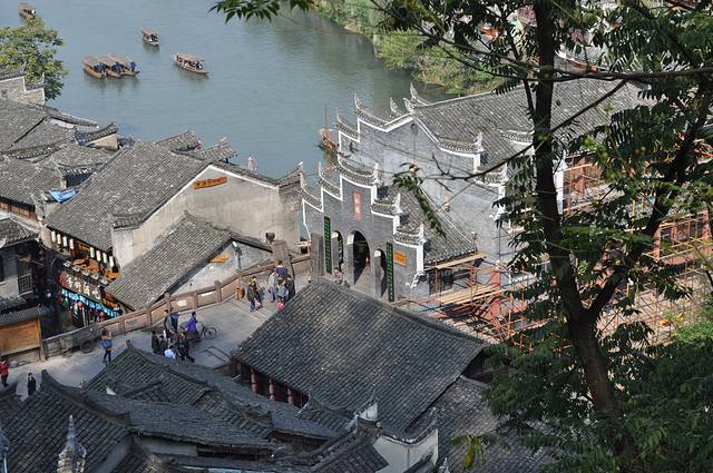 这几张是在沱江大桥上照的,希望能囊括古镇的美