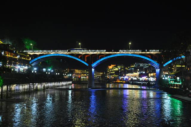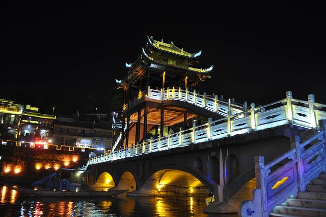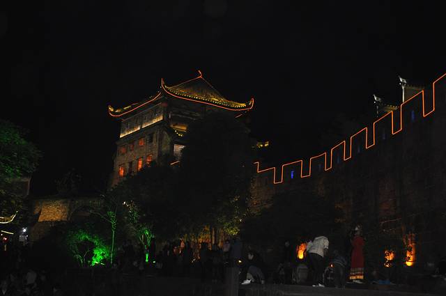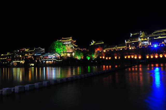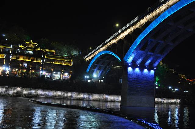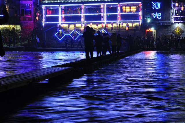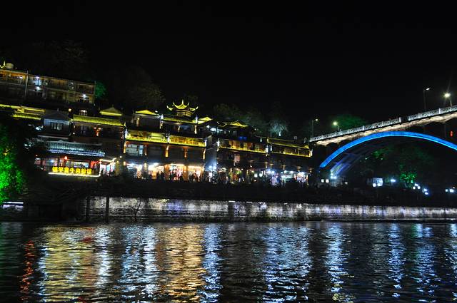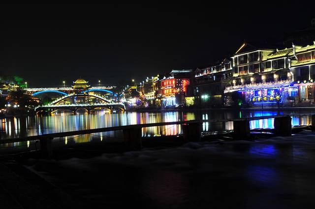 第二天晚上,在刘老板那里吃过饭,跟他分别后,我一个人来到江边,想多照点凤凰的夜景。确实小徐的技术有限,只能将就看啦。