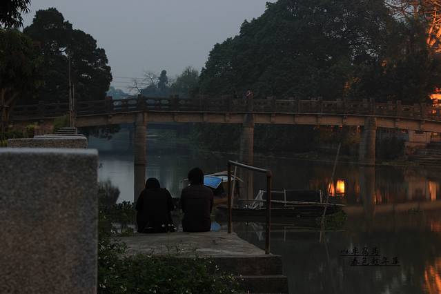 第三天,醒来的时候已是九点多;还以为陈大哥走了。我一个人走去赤坎老街继续吃银记拉肠店的肠粉,吃完就回来关氏图书馆门口,一边在等图书馆开门,一边在抓拍桥上的旅人。大概11点左右,看见陈大哥拉着行李从桥上走过。我就匆匆走去桥下等着陈大哥,看着陈大哥在桥下那店买了一支毛笔和纸,就跟陈大哥握手道别了。