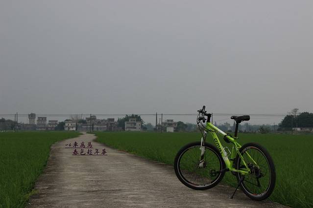 在关氏图书馆里面,没有一本书我感兴趣的,于是就走去了司徒图书馆,幸好里面有两本很薄的关于旅行的书,把两本书看完已是下午一点半左右。然后我又回客栈租了辆山地车往荻海方向骑去,一路的稻田一路的村落,太美了。正好,四月开平的油菜花早已在3月18号凋谢了(记得那天到来我问老板娘,才知道这个日期)于是,我打开手机听着牛奶咖啡的《蝶恋花》,真的很应景。