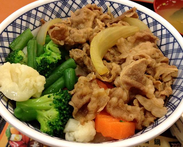 吉野家做的牛肉不错,但青菜做得一般。