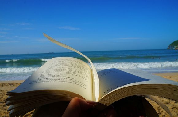 海边看书就是心灵的享受,