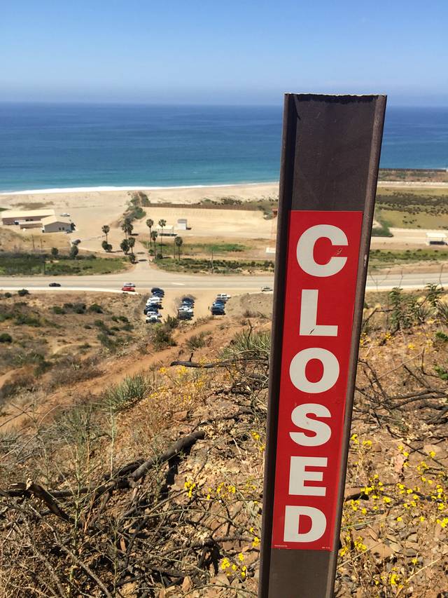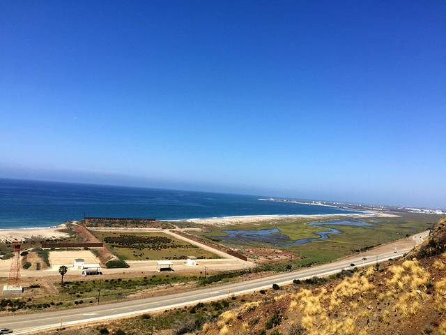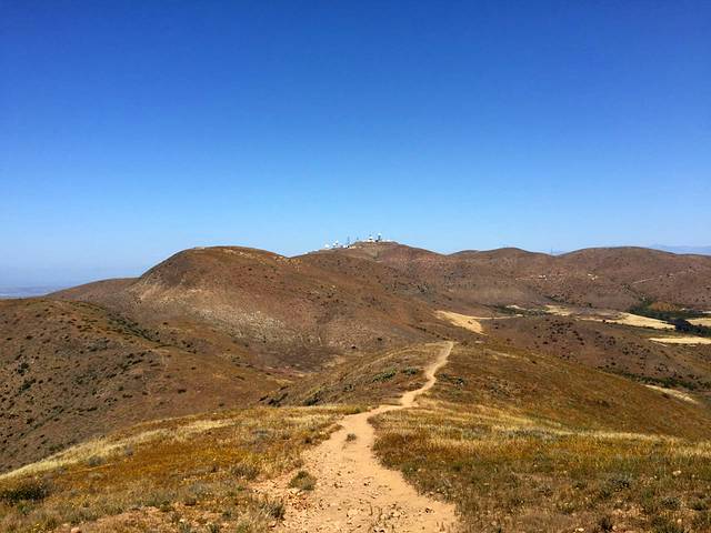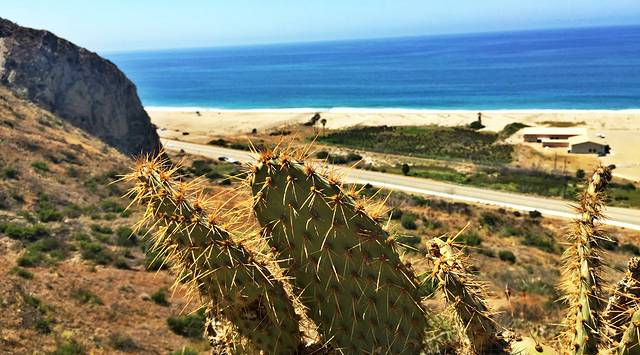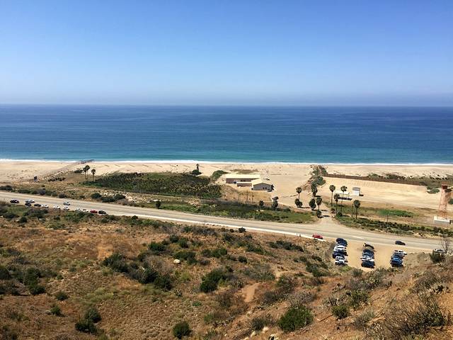 沿路景观是典型的加州海岸景观——大量的丝兰、鼠尾草和其他说不上名字的植物,被我们统称为草。地面有碎石,所以土壤不是很实,每一步都踩好了才能向前。我们行进的不算快,每走一段,都回头看看蔚蓝的太平洋,还有木谷环礁湖(Mugu Lagoon),是位于海军基地内的一块沼泽,也随着我们的上升越来越小了。