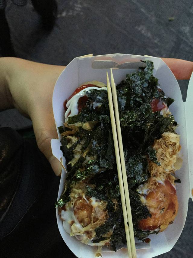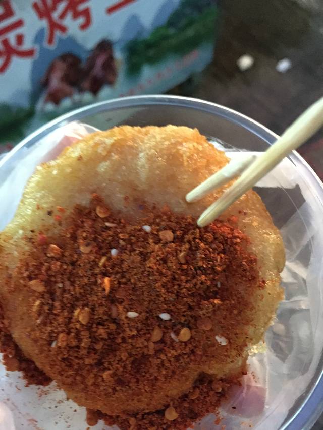 这摊口就在小丸子隔壁,我一边吃着小丸子就一边观察桌上的调料是怎么用的。看了许久,才有勇气试一试。