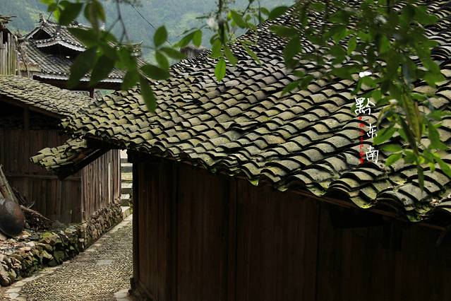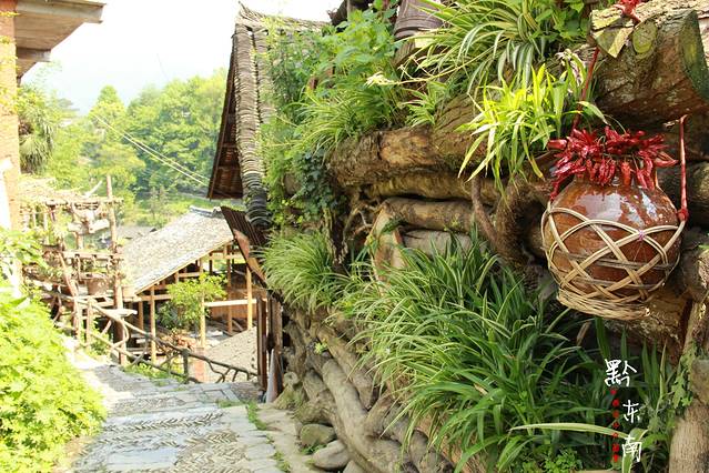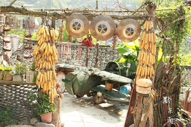这里面是有人住的。这些装饰可能本来就是苗寨的生产用具或是在晾晒农作物,但在我们眼里就是一处风景。