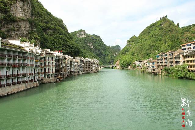 贵州镇远县是1986年第二批全票通过专家组认证的中国历史文化名城之一,以其险要的地理位置和一条贯穿全城的舞阳河而形成一水分府卫,九山包一城的独特景观,似太极、似威尼斯、其实是镇远。