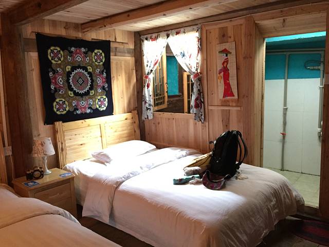 这是古藏人家的独立卫浴的标间,因为山上,而且是木房子,弄卫浴很麻烦,所以苗寨里的住宿都分公共卫浴还是独立卫浴,当然价钱是不一样。