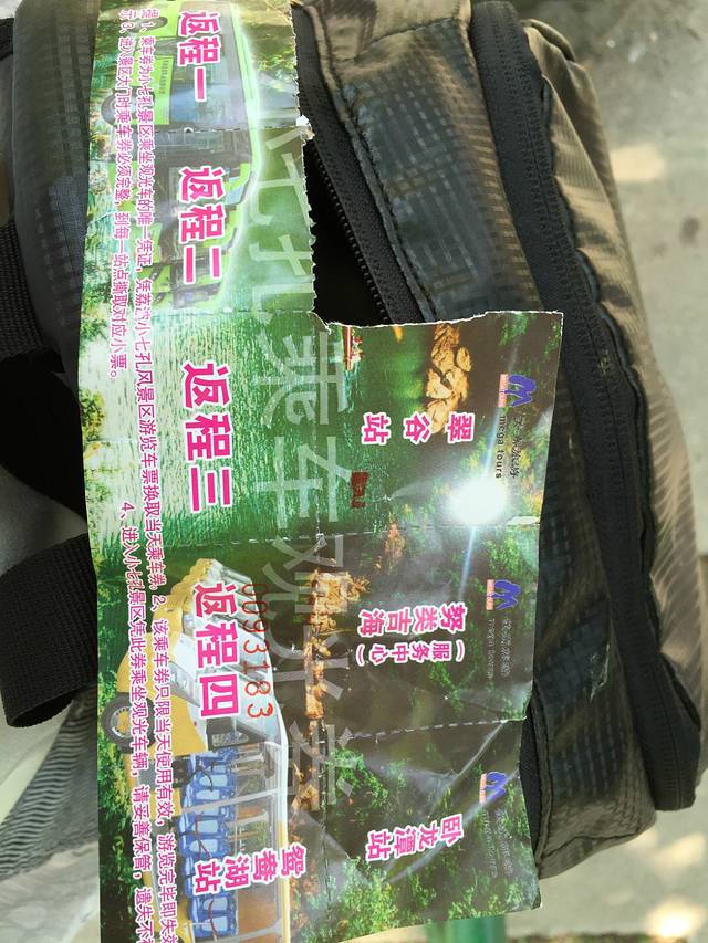这是景区的区间车车票,可不能丢了,每次上车,都有工作人员撕掉一小格。