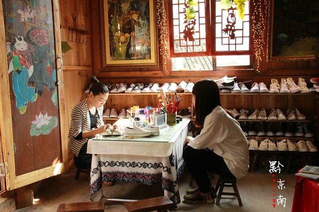她问我要画什么,我说要苗族的卡通人物,颜色鲜艳点,本来说20块一个,只可能画简单的,且只能一面,在我的要求下,她还是帮我在背面写了几个字。
