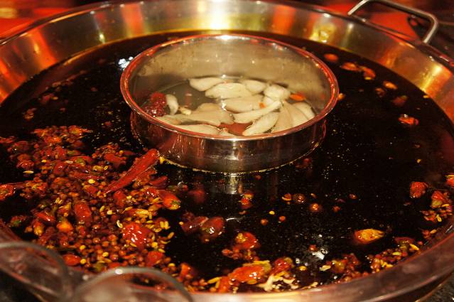 看我们的串串数量就知道来自上海,几乎每样都先拿一点点尝试,看到成都人都是一把一把抓喜欢吃的节奏。串串是用热油封在里面的,味道很正宗,但真的很油很油。