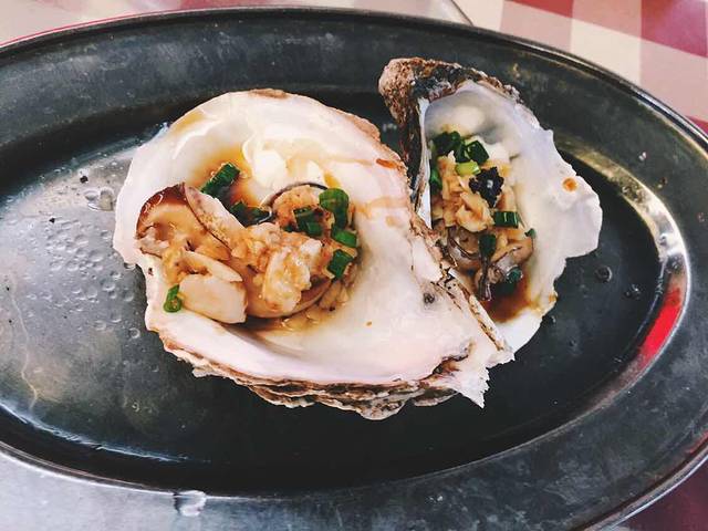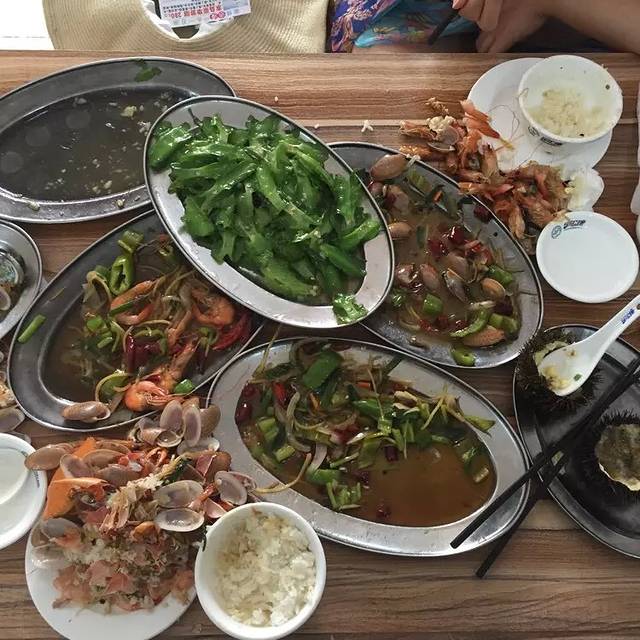 本来想团购吃海鲜…那些店家都说现在团购不给用…真的是醉了 !不给用 那你为什么还在美团上挂着啊…最后拖着行李箱觉得太累了 就随便找了一家吃海鲜。好吧 这是我们到三亚吃的第一顿饭