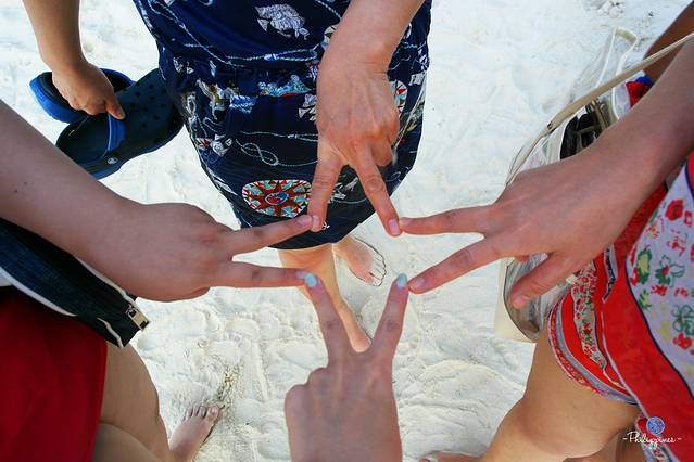 买了海鲜、吃了午饭、买了手信还订了southwest,时间差不多到下午2点了,要回S1去取上午海底漫步照片的光盘。于是我们坐三轮车从D’talipapa先去了S1又到S3,总共给了120P。这一通折腾啊,到了S3竟然还没到预订时间。于是大家又开心的玩起沙子来。