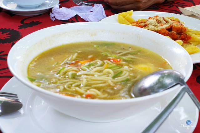 薄荷的开发程度比起长滩差了不少,餐厅不多,看上去也不是很干净。我们随便选了一家,点了noodle soup还有烤鸡什么的,连小费是1000P/四人。