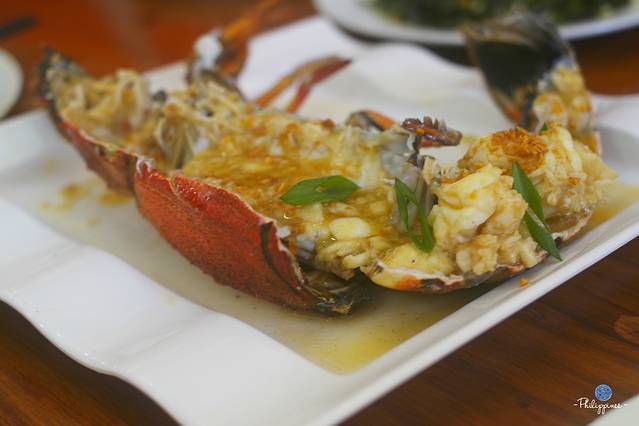 买龙虾那个摊位的小哥问我们打算怎么吃龙虾,要不要加工。我们回答说是,他就带我们去自己家开的加工店。加工费是300P/kg,龙虾两吃的话等于600P加工费,我们觉得太黑了,就出门换了一家。挑了一家看上去干净整洁的,加工费是150P,而且也有别的一些东西可以点。我们除了龙虾、鱼和扇贝以外,还点了烤鸡、炒空心菜和米饭,连小费共计1250P。