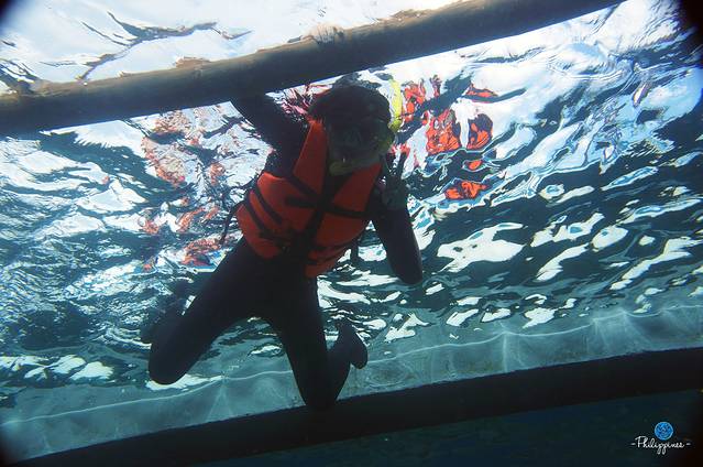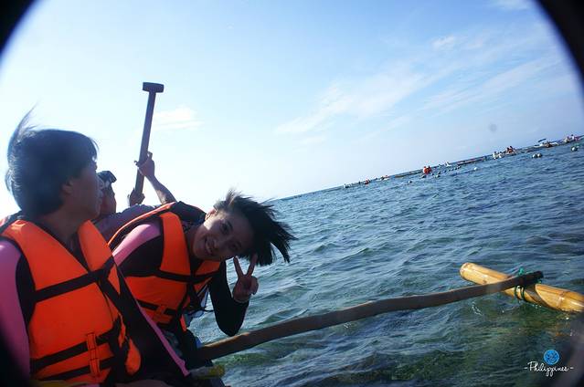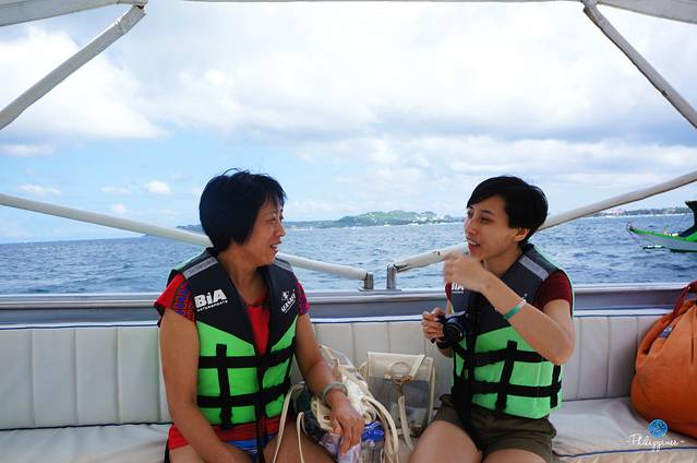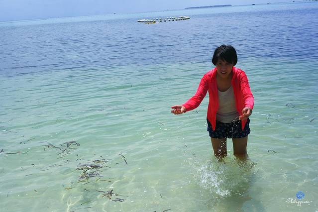 依然是shuttle bus到D’mall,然后三轮车到S1,60P。Julie’s买了40P的hotdog bun来喂鱼。浮潜的船是之前在淘宝定好的,400RMB包船3小时,两个当地人,说是两个浮潜点和一个海钓点。