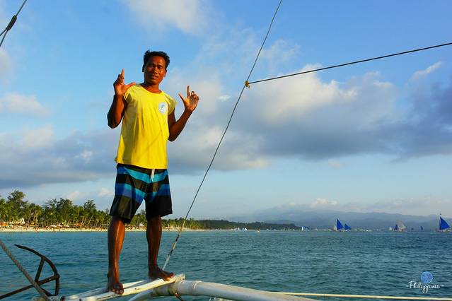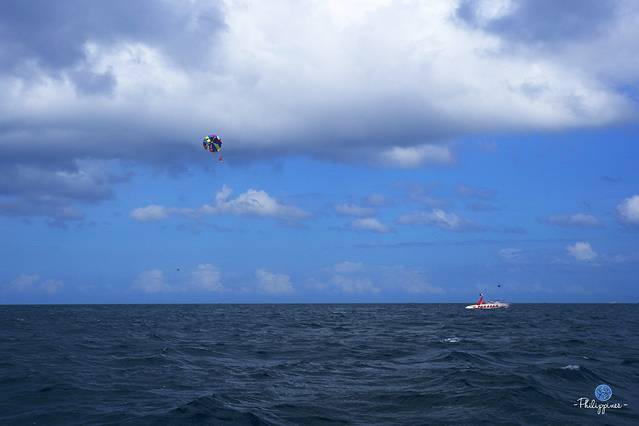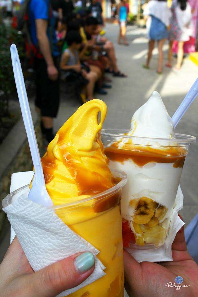 差不多4点了,出门玩Sunset sailing。酒店shuttle bus的小哥儿说可以1500P包船,四个人。我记得攻略上说800-1000P一个船,就没答应他。到了白沙滩之后发现都是这个价格,1500-2000P一船。我不大会讲价,麻麻们虽然会,但是却碍于语言障碍,最终我们还是1500P包船了。等待的期间回到D’mall吃了Haloween。(芒果味儿和香草味儿滴,都好甜,不太符合我的口感)