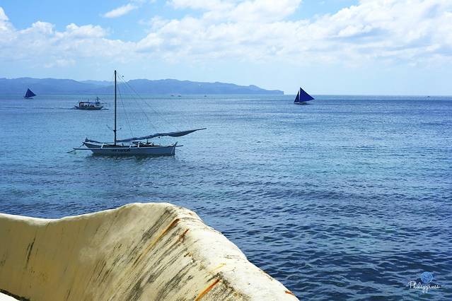 坐车没有几分钟就到了Caticlan码头,下面要换船去长滩岛码头。船都不大,乘客要走过一段搭在船和岸之间的狭窄木板上船,提着行李确实不太方便。有当地人帮忙提上去,给了小费50P。下了船接驳我们不是van,而是类似景区电瓶车的敞篷车,送我们到酒店大门。