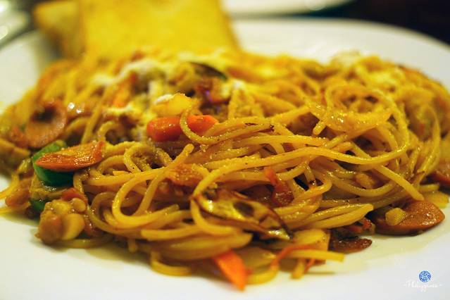 逛了一圈D’mall,最终选定OLE晚餐。点了两份人的海鲜烩饭和主厨沙拉。量挺大的,够4个姑娘吃了(姑娘的妈,也是姑娘不是么)。味道不错。连小费一共1725P。