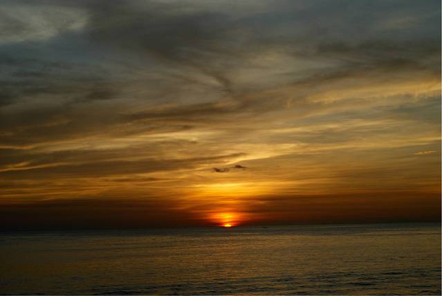 太阳是这样躲到海里去的,还带走了许多云彩。