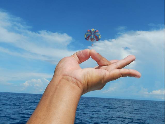 拖曳伞很刺激,快艇拖着你在天上飘,俯瞰着整个长滩岛,感觉融化在蓝天中。