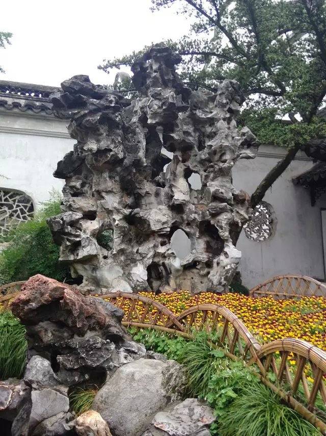 九狮峰:九狮峰位于小方厅北亭院内。院内花坛内,有一座高大的太湖石峰。石峰多孔的巨峰,形态俯仰多变,气势雄伟。仔细端详依稀可见九头不同姿态的狮子,故名“九狮峰”。此峰用若干块湖石镶嵌接叠,而无斧凿痕迹,叠石技艺相当高超。