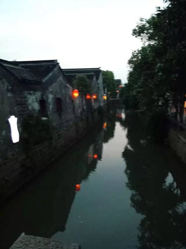 到达平江路夜幕初降,河岸两边点起了明灯,沿河漫步非常惬意。
