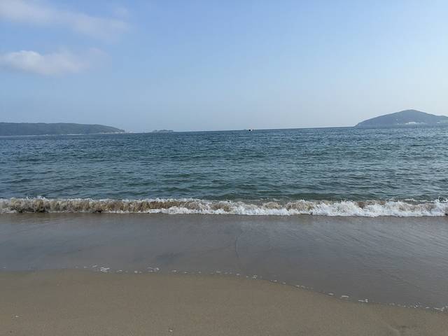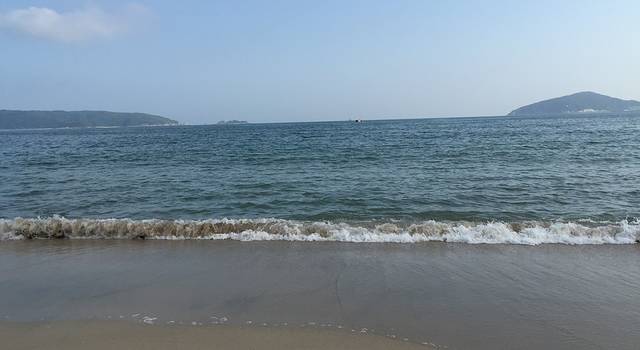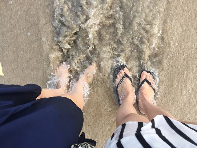 水中走,每一抬脚,一个浪就把人字拖冲走了……走了一小段被冲走不下6次!虽然有点怕被贝壳割到脚,最后还是光着脚丫走了