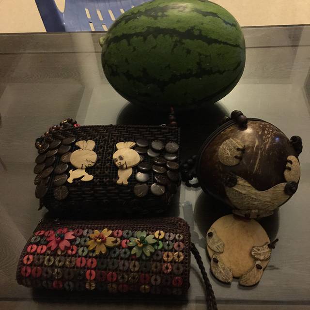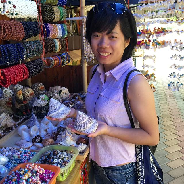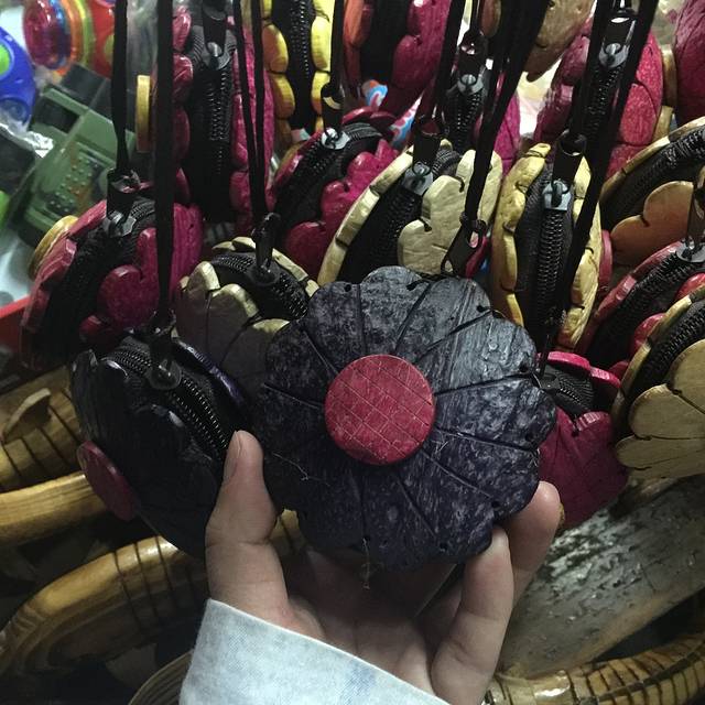 终于抽时间去逛了所谓的购物街。整条街大概就六七家小铺吧,都是卖贝壳相关的手工艺品,当然少不了R喜欢的椰子壳包包。R竟又在看!还想买!而我竟也动摇了,也买了一个!我真不敢保证是否会拎