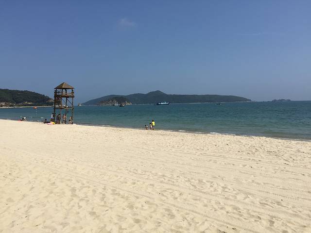 “好漂亮的海滩 沙子挺白的哦”R不由感叹。坐在那里穿着制服的大叔们(应该是救生员)笑着调侃“那就用瓶子装回去!……哈哈……”